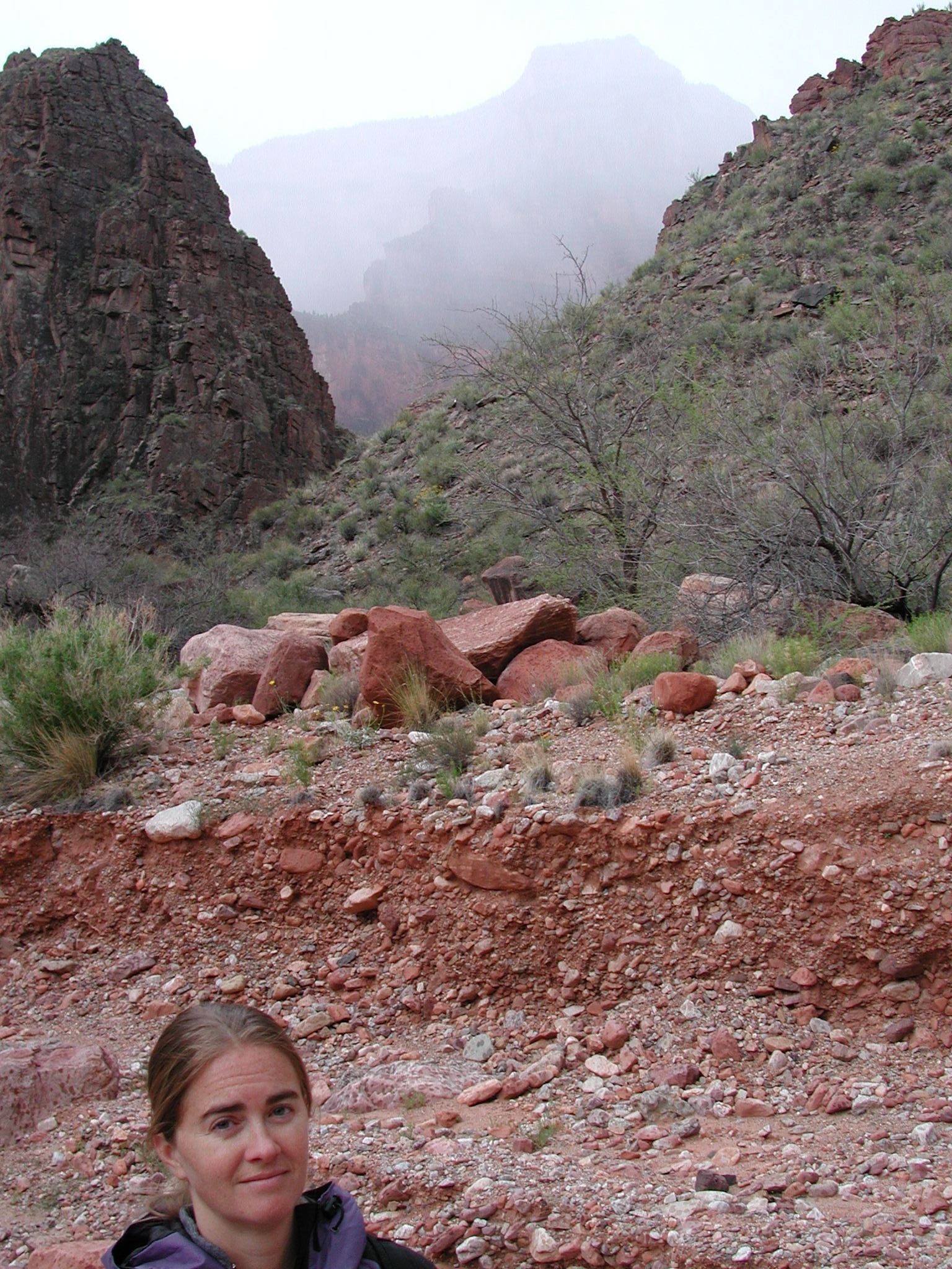 | Large -- Medium It rained on us most of the way down to the Colorado River, here you can see that up higher in the canyon it was worse. |