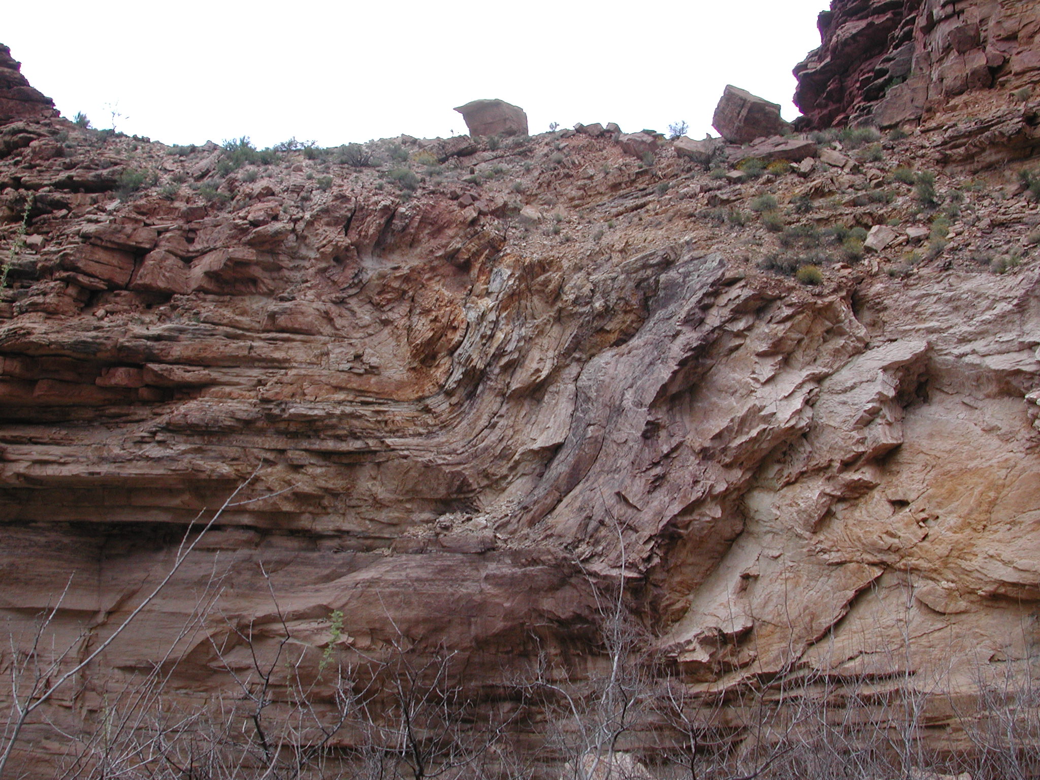 | Large -- Medium This crazy fold was above our Monument Creek campsite. |