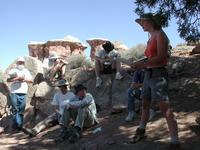| Large -- Medium Tamara Goldin talks about joints at the Joint Trail trailhead. |