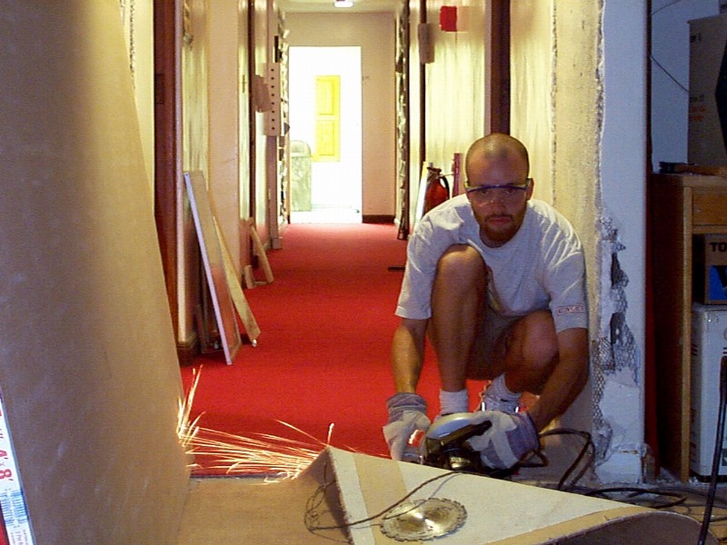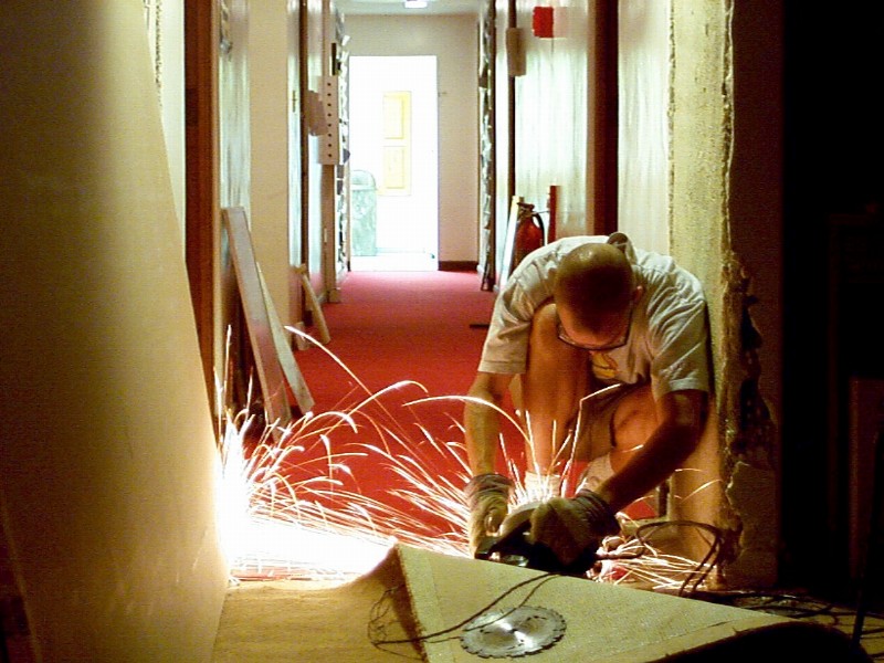 Me cutting through the metal pipe that