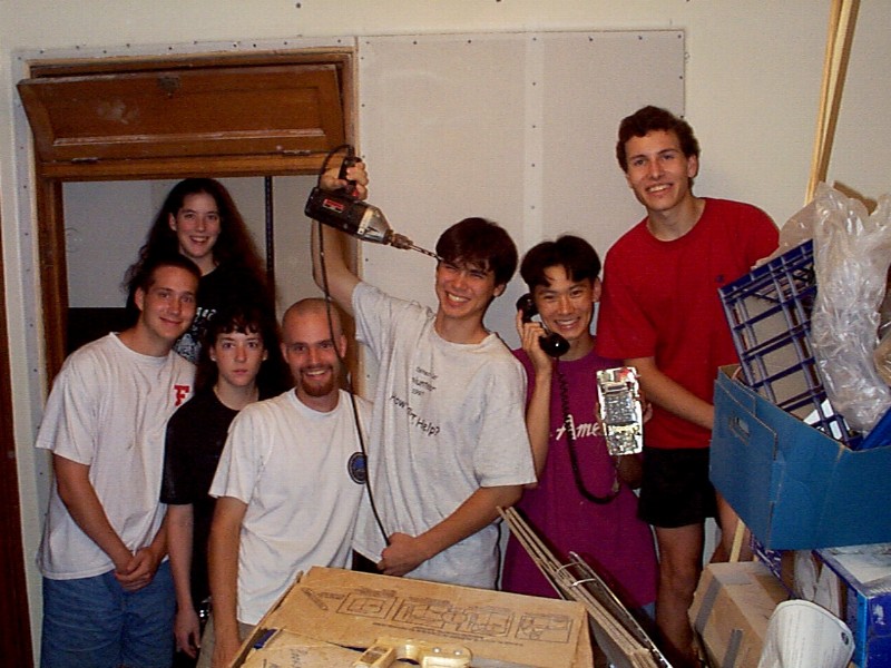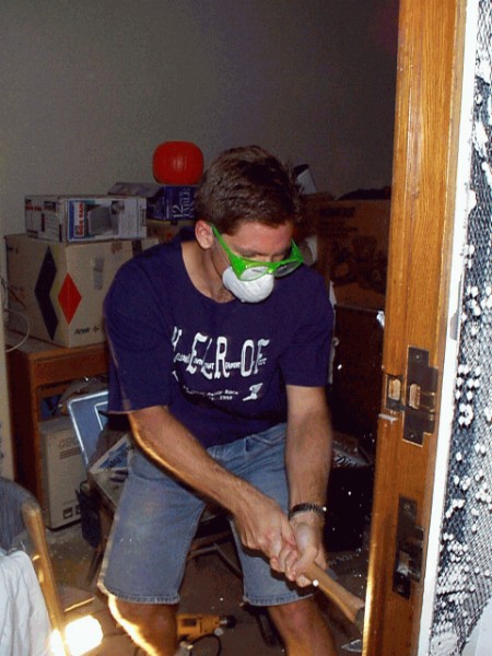 Greg helping to align the door.